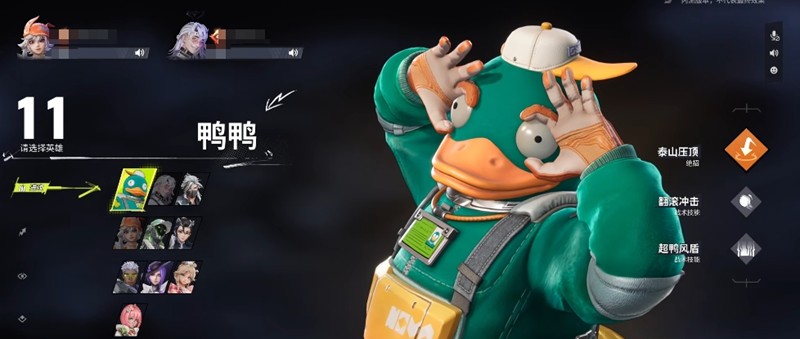 鸭鸭是团队突破的核心力量,他的皮球冲刺技能可以快速穿越战场并减免伤害,为队友创造进攻机会。大招击飞风暴能对大范围敌人造成击飞效果,使用时需要精准把握时机才能发挥最大作用。