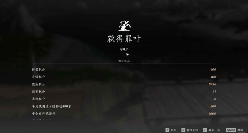 结算的罪业币与积分相关,而获取积分的最快途径就是收集宝物。以下是常见道具的大概数据: