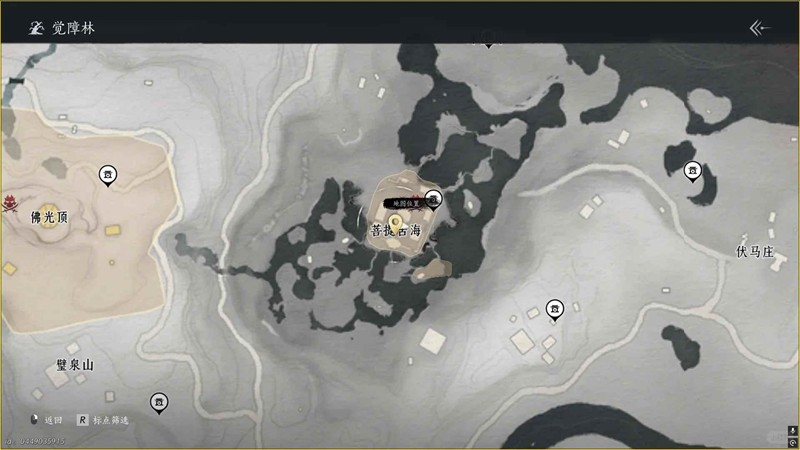 进入觉障林就开始往菩提苦海标点处去,随后去怜花禅院据点的标点处,然后是酒肉山林据点的标点处,接着去佛光顶小路的标点处,再爬上佛光顶塔边的标点处,然后去p9的标点处,最后去慈心镇的标点处