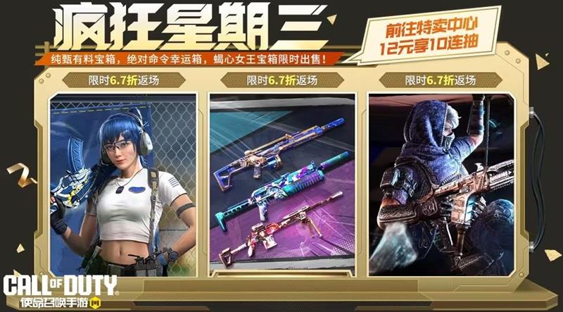 《使命召唤手游》的“疯狂星期三”活动为玩家带来了纯甄有料宝箱、绝对命令幸运箱和蝎心女王宝箱的返场。这些宝箱不仅内容丰富,而且玩家还可以享受特惠十连抽的福利。