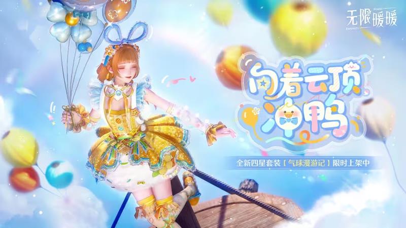 “向着云顶,冲鸭”限定共鸣:同期开放,搭配师可获取全新4星套装“气球漫游记”。该套装有彩蛋,清洁特定小动物后,套装手持物中的气球会变成对应小动物的形状;骑行相关载具时,气球会系在车把上。