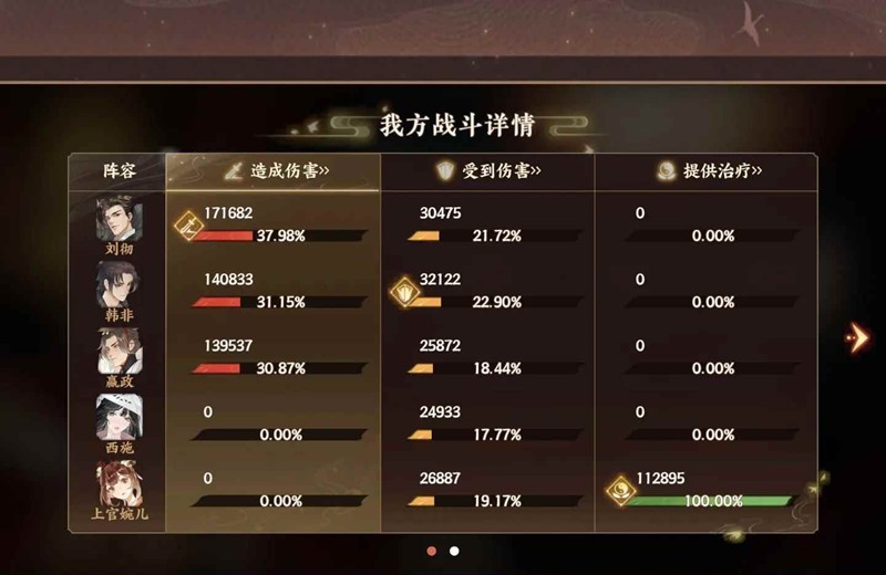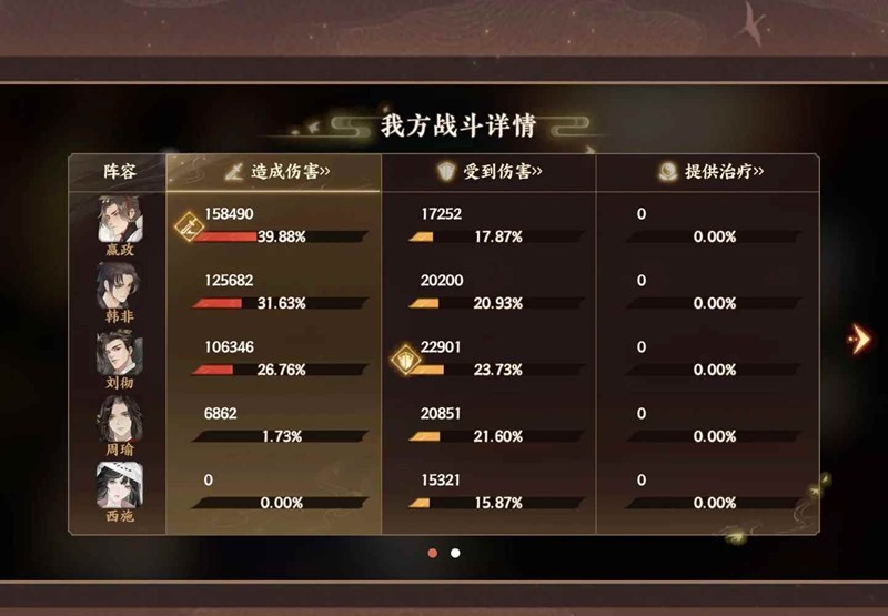 二回合内结束的思路是,婉儿换周瑜,赌dps存活概率,大概率第一回合全员存活,第二个回合我是周瑜会离场。一速还是西施,保证周瑜是二速,要比其他dps跑得快(可以比鬼王跑的慢,我因为保证速度,穿的是我最快的一套装备,是一套流光)。我一速周瑜二速西施,也不影响。第一个回合全员开大,刘彻的大招打在中间的boss上,保证第一个回合手掉中间鬼王。第二个回合西施二技能给盾,周瑜开大,其他的正常打,基本被周瑜锁到的另外两个鬼王能够倍韩非+嬴政的一技能收掉。剩的两个鬼王就看刘彻出不出暴击!出了!一刀一个结束!希望大家都能够红红的!顺利拿下三星!