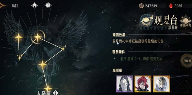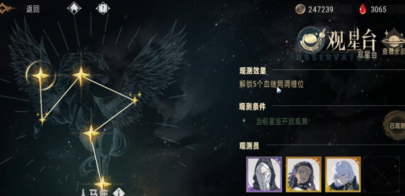 观星台的主要功能是提供各项加成效果,这些加成会随着观测进度的推进而逐步解锁。玩家在提升观测进度后,可以解锁更多调栏位,这些栏位对后期角色培养至关重要。建议玩家优先将观星台的观测进度拉满,这样能获得更全面的加成效果。目前观星台开放至第9章人马座,后续内容可能会随版本更新逐步开放。