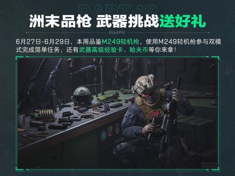 此外,本周品鉴M249轻机枪活动也将为玩家带来额外的惊喜。使用M249轻机枪参与双模式完成简单任务,可获得武器高级经验卡、哈夫币等丰厚奖励。