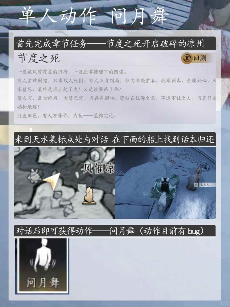 以上就是燕云十六声凉州动作问月舞获取攻略的全部内容了,更多游戏资讯,攻略内容敬请关注切游网,您的支持是我们努力的动力!