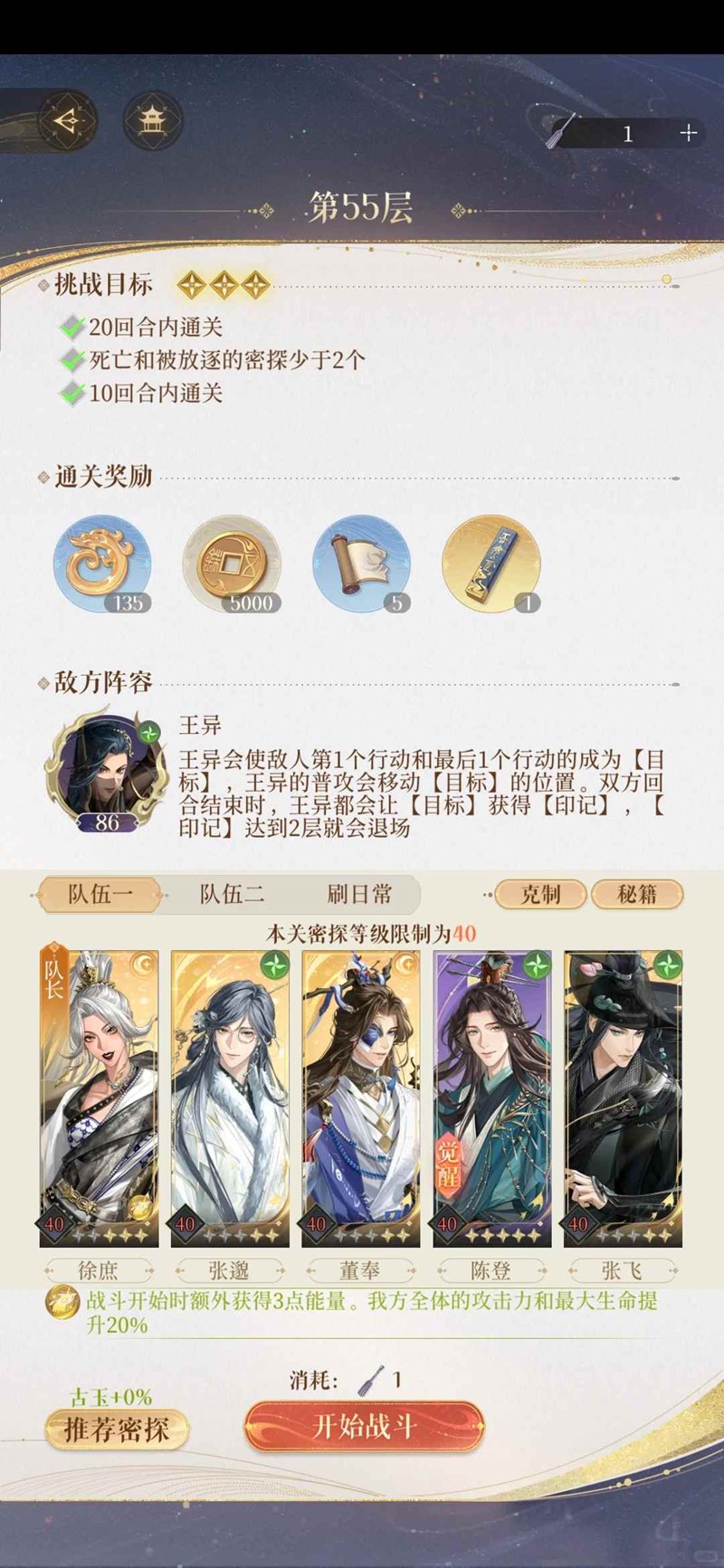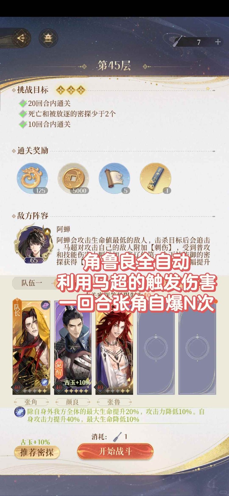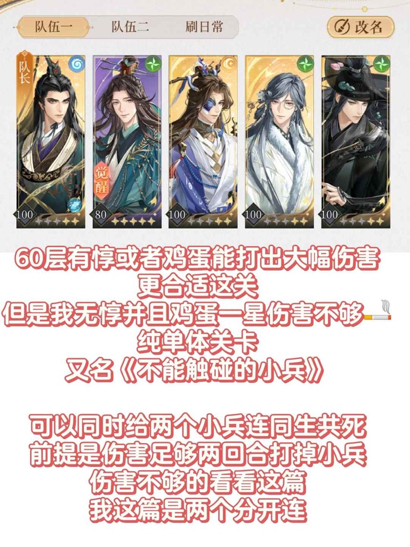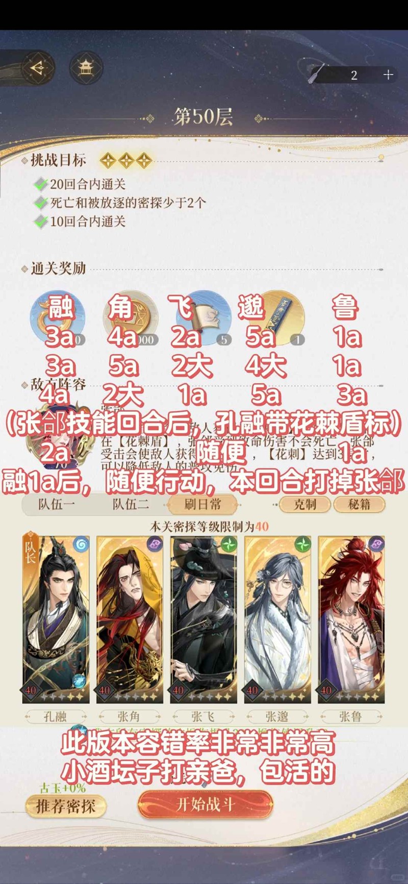 p5配对站位不可更改,第2回合陈登再放大,然后后面就是全员有大放大,正常攻击只打王粲。(思路:先链2号位小兵再链3号位小兵)