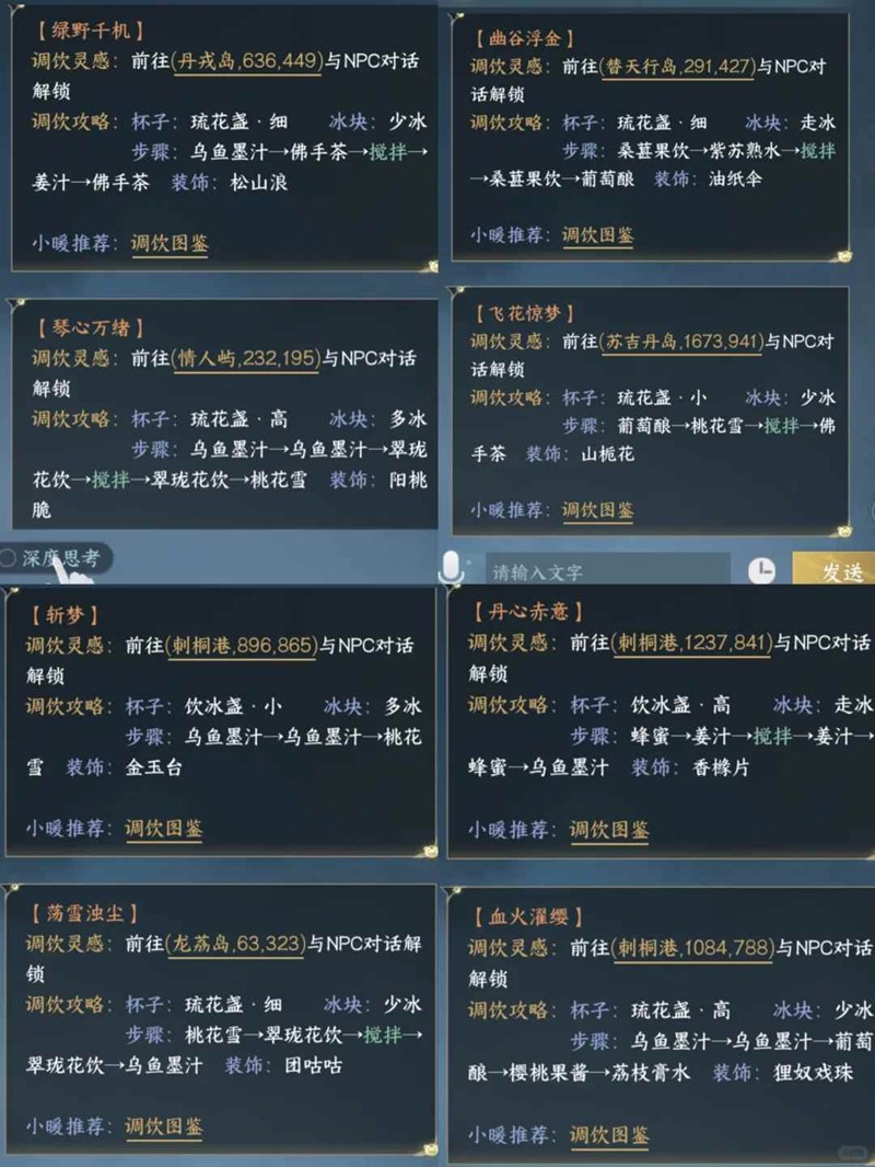 逆水寒手游清饮百味活动调饮图鉴大全!
