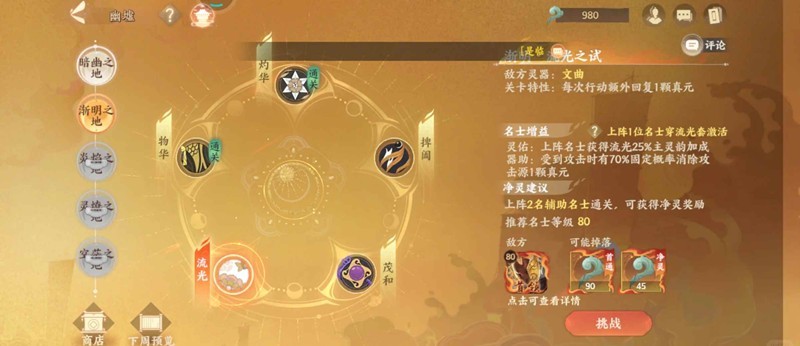 幽墟五层灼华关:单次攻击必须把血线压到80%/40%/0%以下,否则会直接回血到100%/60%/20%,回合限制10回合