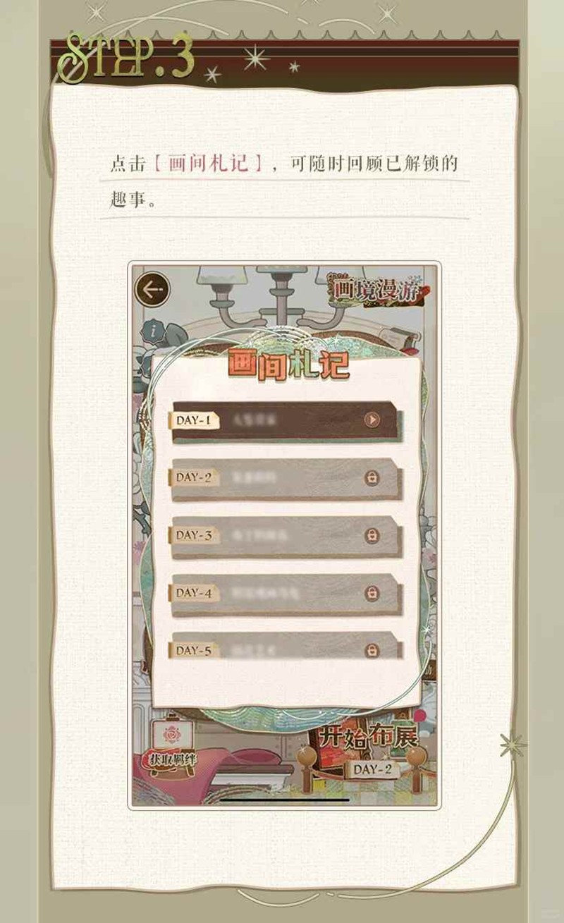3.点击【画间札记】,可随时回顾已解锁的趣事。