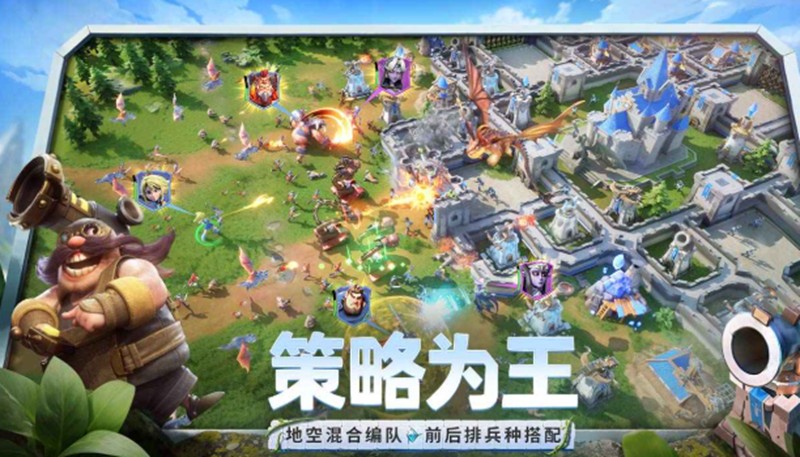 在龙石战争中,玩家可以自由建造和升级主城,布置防御塔和陷阱来打造专属防御体系。游戏中的兵种系统非常丰富,地面部队、空中单位以及群体兵种之间存在明显的克制关系。比如地面部队若缺乏对空能力,就很难应对空中单位的袭击,而群体兵种则会被范围攻击克制。这种设定要求玩家必须根据战场形势灵活调整战术。