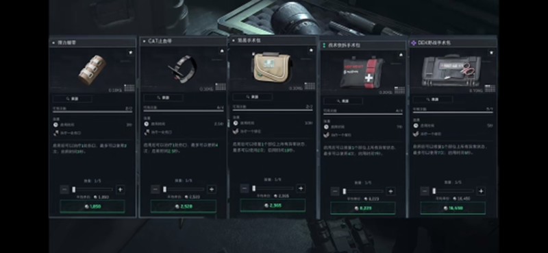 针对特殊伤势,游戏提供了止血带和手术包等专业医疗道具。止血带能快速止住轻度流血,避免生命值持续流失。而手术包则能处理骨折等重伤状态,野战手术包相比简易手术包具有更短的使用时间,在实战中更为实用。止疼药可以暂时缓解疼痛带来的负面影响。