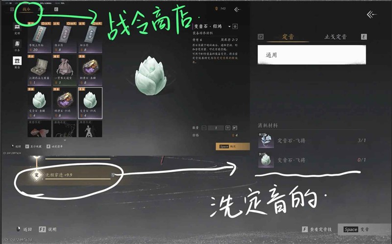 变音石:【战令商店兑换】,可以理解为就是用来洗定音,因为有的时候第一次定音可能是紫色的,多洗几次,洗成金色就好。