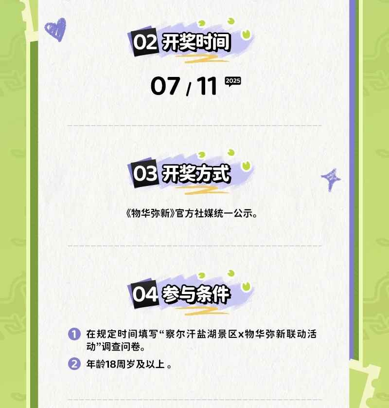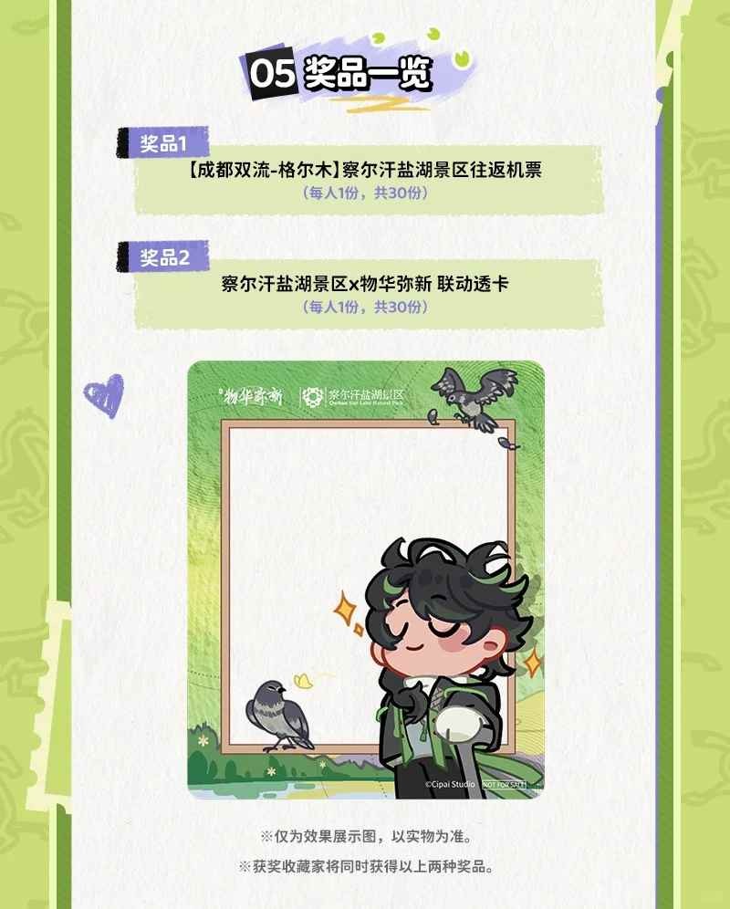 关注 @物华弥新 并评论本条动态,我们将于7月30日抽取20名收藏家送出【察尔汗盐湖景区×物华弥新 联动透卡】*1,届时请中奖的收藏家在5个自然日内按照系统中奖提示填写收件信息(逾期则视为放弃奖励),我们将会在30个工作日内寄送奖励。
