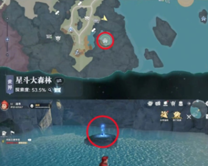 在星斗大森林边缘的悬崖顶端,生长着一株散发着幽蓝光芒的仙草,这个位置有明显的红圈标记,玩家很容易就能发现。水域中央也有一处仙草生长点,同样有红圈标记,服用后能获得不错的属性加成。