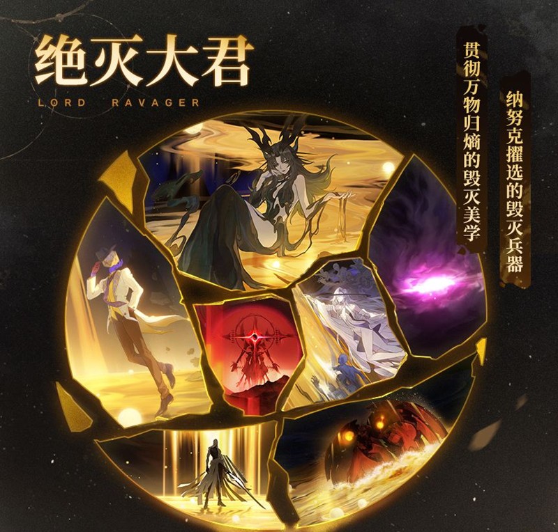 绝灭大君是星神纳努克的令使,作为“毁灭”意志的执行人,他们痴迷破灭美感,贯彻万物归熵准则,既是战争艺术家,也是掌握毁灭伟力的兵器。每位绝灭大君都有独特的“毁灭”理念,这种独特性让他们极端危险,甚至被视作纳努克赐福的“反物质弹”——若生命以负熵为食,他们的行为注定促成毁灭,最终与银河一同走向终结。