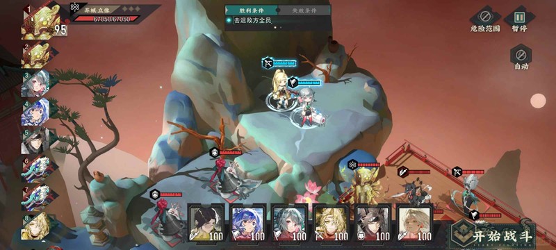 打法站位所示,此关我采用的先保再打的方式,逐个击破,思路如下: