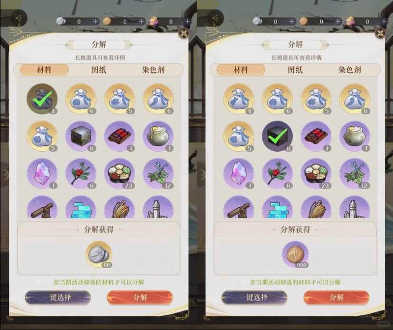 甘缇、关靖、徐樨、李真自动派遣额外获得材料