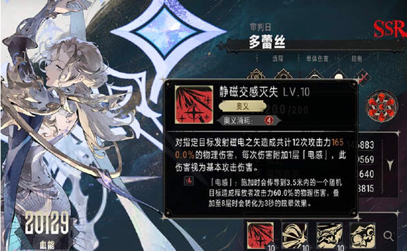 银与绯多蕾丝的核心输出技能,能够对指定目标发射12次磁电之矢,每次攻击都会传导到附近敌人身上。这个技能在释放后会立即激活,随着时间推移造成的伤害会持续增加,是清场的主要手段。