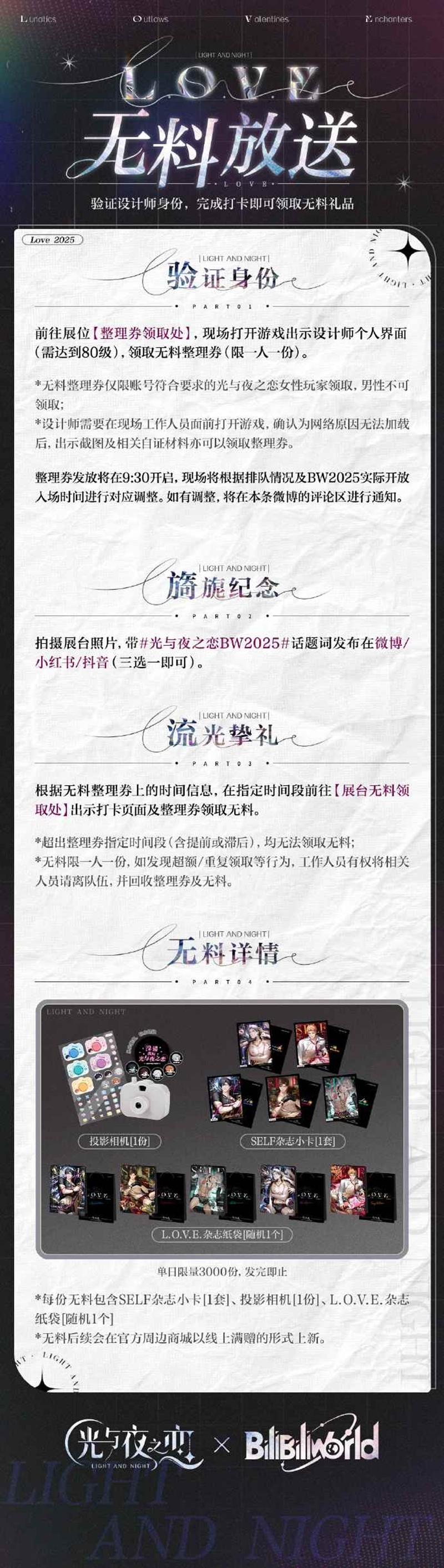 我们为每位持有整理券并完成打卡任务的设计师们准备了SELF杂志小卡、投影相机、L.O.V.E.杂志纸袋无料惊喜,静待设计师前往领取