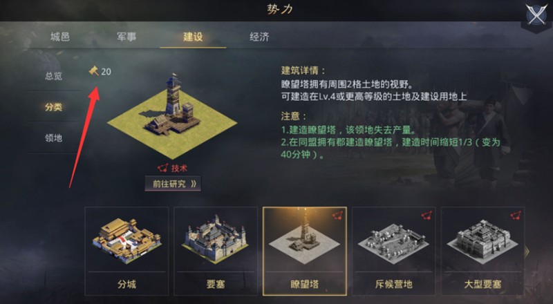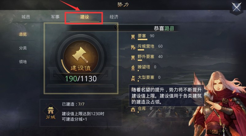 提升建设值的关键在于积累名望。玩家可以通过完成游戏任务获得名望奖励,系统每5分钟也会自动发放1点名望。建造和升级社稷坛是快速提升名望的有效方法,每个社稷坛都能带来600点名望加成。名望不仅影响建设值上限,还决定了可占领的土地数量。