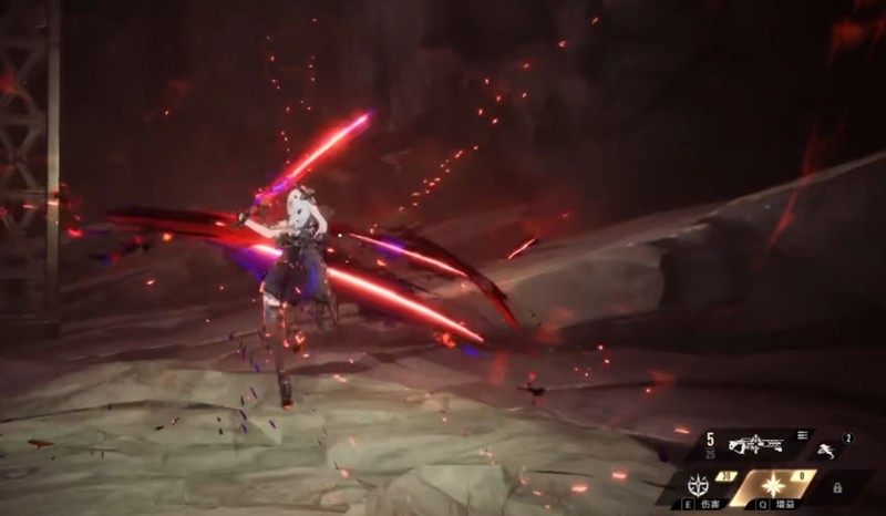 冥焰技能是贝蕾尼卡的核心输出手段。发动后武器会切换为伊弥尔,攻击时自动释放剑气,同时获得护盾效果避免受到攻击僵直。这个技能需要持续消耗神智值,在二重螺旋的战斗中需要特别注意神智管理,避免过早耗尽能量。