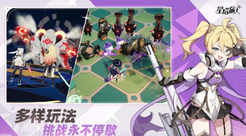 游戏的核心玩法是爬塔冒险,玩家可以操作一名主要角色,同时获得两名援护角色的协助。塔楼中设置了多种不同类型的楼层,包括战斗区域、商店和随机事件等。击败敌人可以获得奖励用于培养角色,还能挑战高难度的boss关卡。游戏融入了RougeLite规则,每次爬塔结束后系统会根据探索表现给出评分。