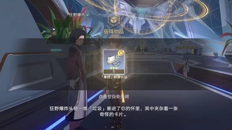 来到主控舱段下方的传送锚点附近,在黑塔币兑换处往前走会遇见名为"狂野爆炸头"的NPC。与他进行五次对话后,就能获得第一张权限认证卡。对话过程中不需要做任何选择。