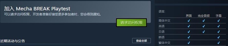 解限机目前正处于测试阶段,玩家可以通过加入Mecha BREAK Playtest来体验测试版本。这款游戏主打多人机甲对战玩法,玩家可以操控各种酷炫机甲进行战斗。游戏画面表现力出色,对电脑配置有一定要求。
