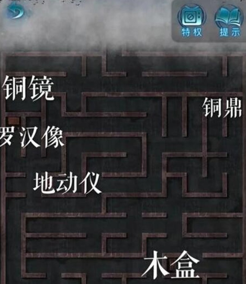 迷宫区域的通过顺序为:前、左右、右前、前左右、前右右。按照这个路线可以打开盒子获得木雕和古币。继续前进的顺序是:左右左前、左右前右、前前前前、右左左,完成后可获得罗汉像。将罗汉像交给老肖能换取秤砣和寺庙道具。