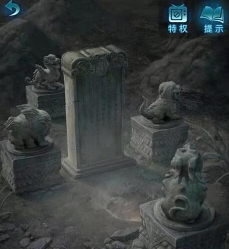 根据左侧雕像的提示打开古墓,获得火把后点燃书籍可以得到咒符。用火把烧毁庙宇可获得王相愿和弓箭,将符咒贴在脸上能获得青铜球和小铜船。铜鼎上的图案需要按照提示进行替换,完成后就能离开当前场景。