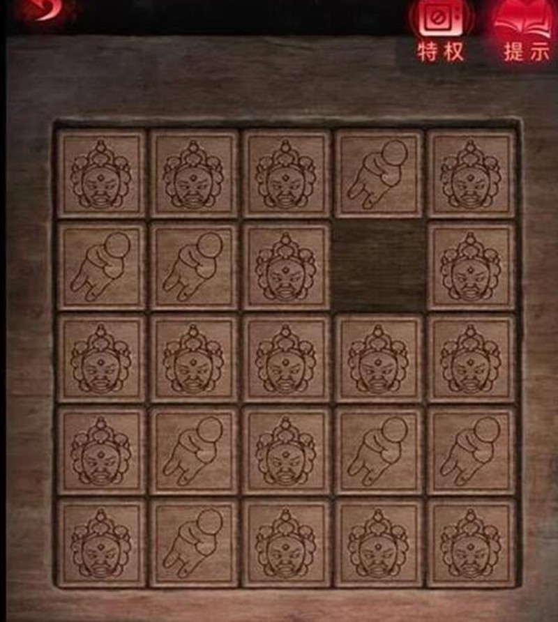 打开左侧的功德箱需要按照特定图案操作,成功后可以获得木块和布娃娃铜像。外侧墙壁的烛火点燃顺序为:第四排中右、第三排中右、第二排左中右。获得布娃娃后交给奚月遥,切换视角可以在左侧桥下发现两个布娃娃。