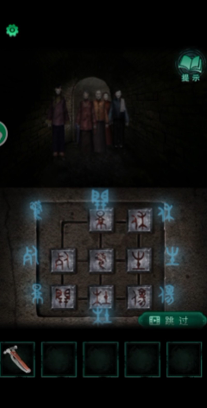 解谜过程中会有鬼怪前来干扰,我们可以通过点击屏幕来击退它们。保持冷静是关键,在鬼怪靠近前完成文字排列才能顺利通关。如果觉得难度太大,屏幕下方的视频图标提供了跳过选项,观看广告后可以直接开启石板大门。