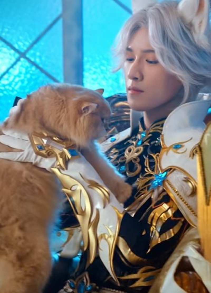 李昀锐在视频中展现了灵猫魔法师·塞维尔的神秘与优雅,无论是人形态还是猫形态,都演绎得淋漓尽致,拍摄花絮中展示了大量精美的特效和奇幻的场景,包括可变身猫咪的飞行器、金色乐谱阶梯等,为玩家带来视觉盛宴。