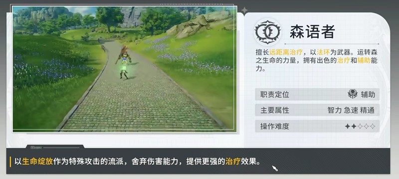 森语者是游戏中唯一的治疗职业,主要负责团队的治疗和复活工作。"生命绽放"可以持续为队友恢复生命值,"复苏之种"则能复活阵亡的队友。虽然定位是辅助,但"荆棘之怒"这个范围攻击技能让森语者也具备一定的输出能力。这个职业操作简单,是团队副本中不可或缺的存在。
