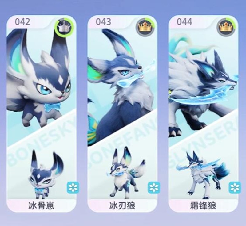 冰骨狼初始属性偏向速度与冰系攻击,防御属性相对较低。在进化成霜雷狼后,魔攻与速度会得到显著提升。进化需要完成雪山雷暴天气下的特定任务,并收集20个寒霜结晶,这些材料可以通过雪山矿脉采集或击败冰系怪物获得。