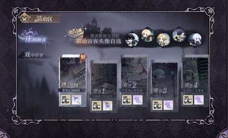推进「庄园诡戏」活动剧情,可在[活动区]-[庄园旅寻1分阶段领取联动访客头像自选。