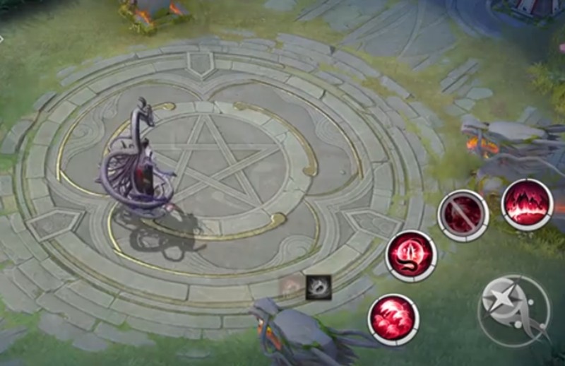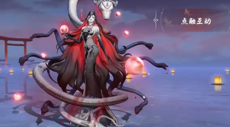 二技能冥狱裁决会在指定区域生成红色光球,延迟后下砸造成范围定身和伤害,是伊邪那美的核心控制技能。三技能蛇嗣吐息能造成持续伤害,命中敌人后会在血条上方显示蛇标记。被标记的敌人死亡时会触发沉沦效果,目前这个新机制的具体效果还在完善中。终极技能神赐之吻召唤巨蛇攻击敌人,造成击飞效果并在技能后方生成弧形墙体,具有强大的团控能力。