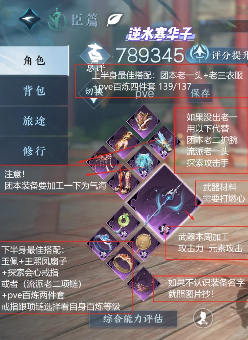 上半身最佳搭配:团本老一头+老三衣服+pve百炼四件套 139/137