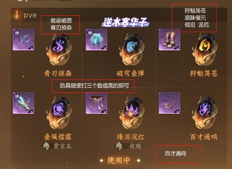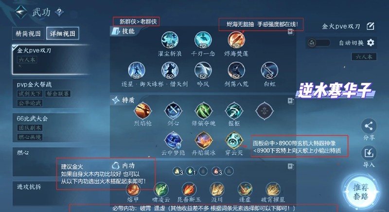 必带内功:破霄 逢虚(其他收益差不多 根据词条元素选择即可以下即可!)
