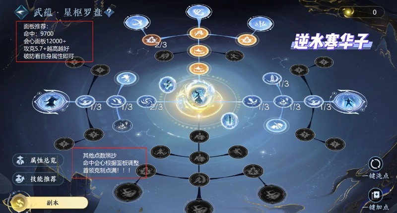 命中:9700,会心面板12000+,攻克5.7+越高越好,破防看自身属性即可