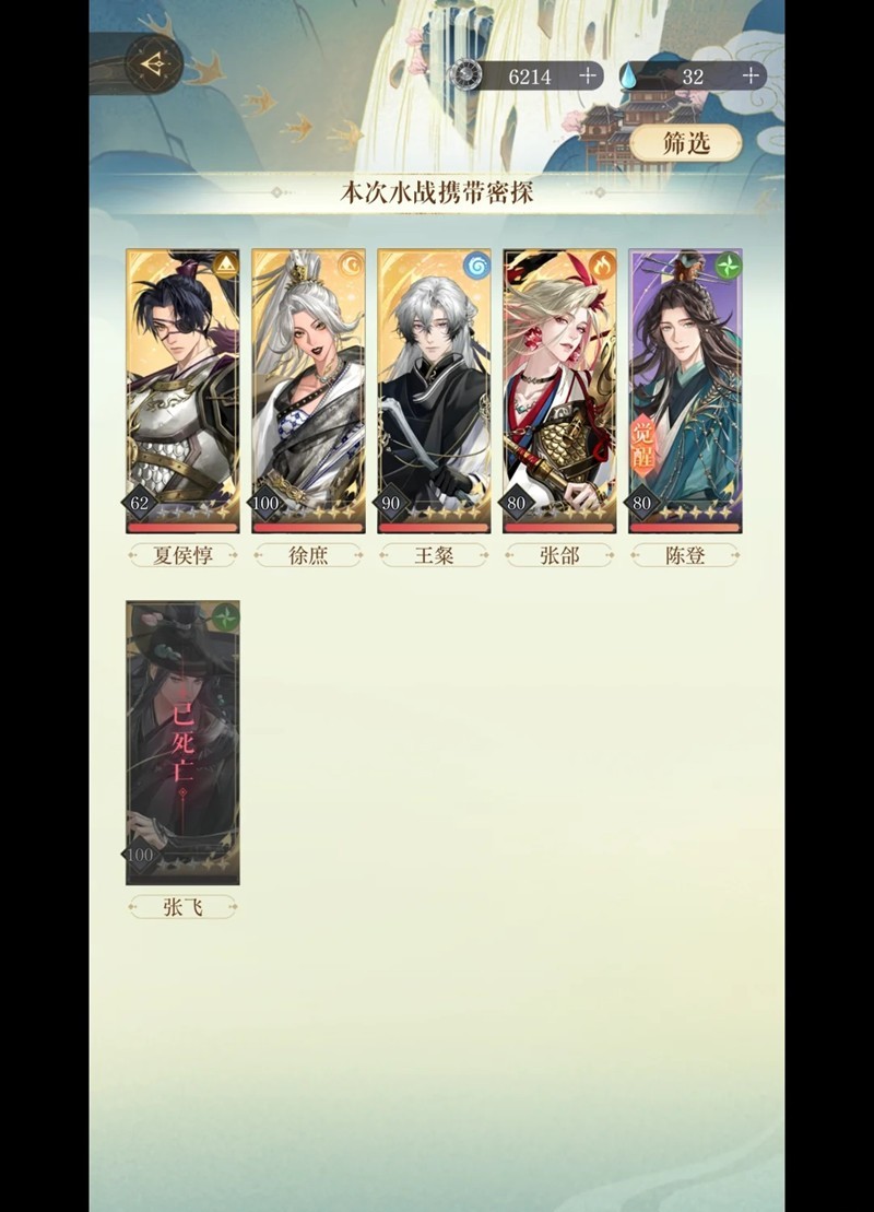 与水帘洞一样,如果练度比我高,天赋树可以稍微减一点,毕竟我的夏侯惇只有60,阶段BOSS,比如权香宓,稍微头疼一点的是鲁肃。
