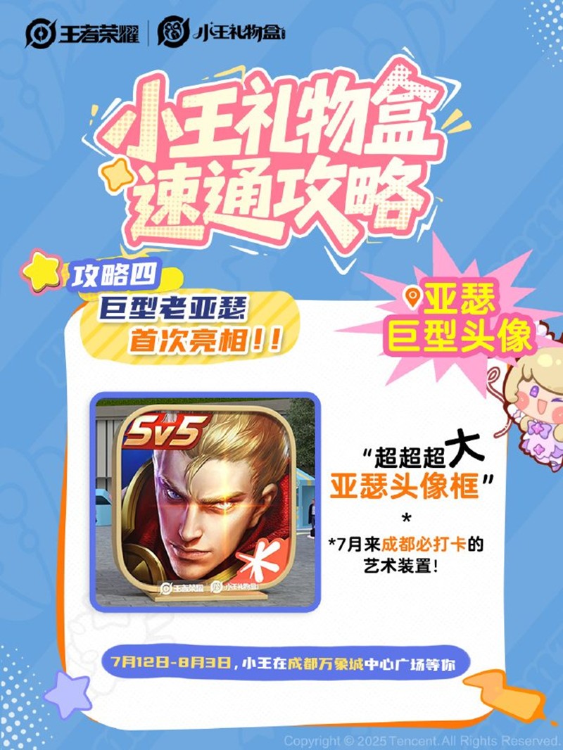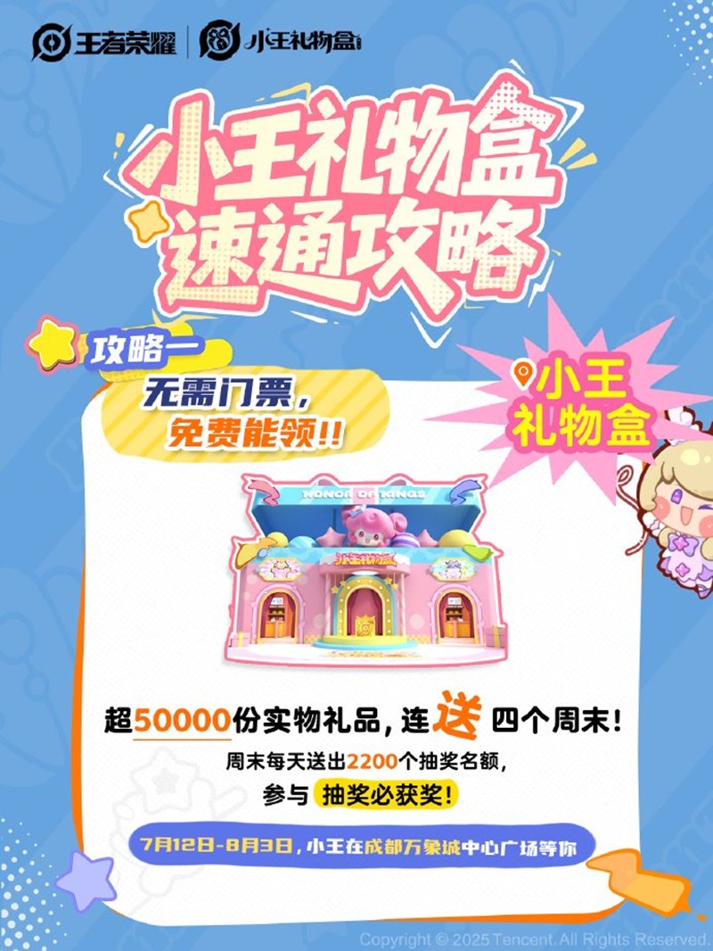 为庆祝王者荣耀十周年,腾讯官方特别打造的线下福利活动——【小王礼物盒·第一季】即将于2025年7月12日至8月3日期间,惊喜空降成都万象城,为广大玩家带来一场前所未有的线下狂欢盛宴。