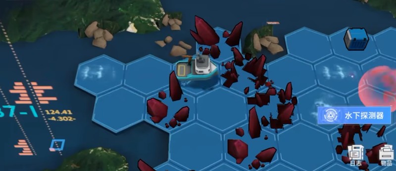 接下来需要沿着地图最左侧边缘向下移动,直到抵达水泡道具旁边。这时会出现红色礁石阻挡去路,直接撞破即可。进入礁石内部后,还会遇到第二块红色礁石,同样撞破后就能顺利完成第二关挑战。