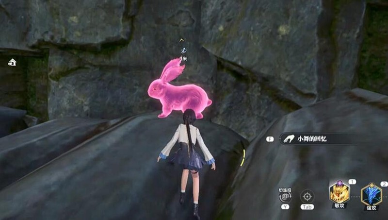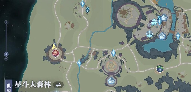 首块碎片位于星斗大森林左上角的星斗谷地,坐标为探索度42.1%的山地区域。从森林入口传送点向西直行至崖壁凹陷处,可以看到粉色兔形光晕悬浮在岩缝中。靠近会自动触发"幼年小舞"对话,点击光点即可收集。如果没看到光晕,需要切换至黎明或黄昏时段刷新场景。