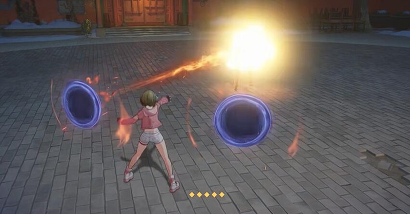 诸葛萌的普攻"燕踢"共有五段攻击,第五段带有击退效果,是连招的重要起手技。一技能"二门流火"分为短按和长按两种模式,短按释放两颗追踪火流星,长按消耗体力召唤二门进行突袭攻击。二技能"玉兔登山"同样具备两种释放方式,短按进行短距离突进踢飞敌人,长按则能消耗体力实现半屏位移。