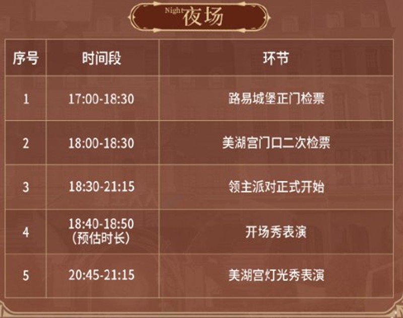 18:30-21:15升级为顶奢复古剧场,城堡外墙19:00整点启动灯光秀,20:00将全球首发《命运方舟》2.0版本首支预告片,所有到场的领主大人将共同倒计时迎接新纪元。