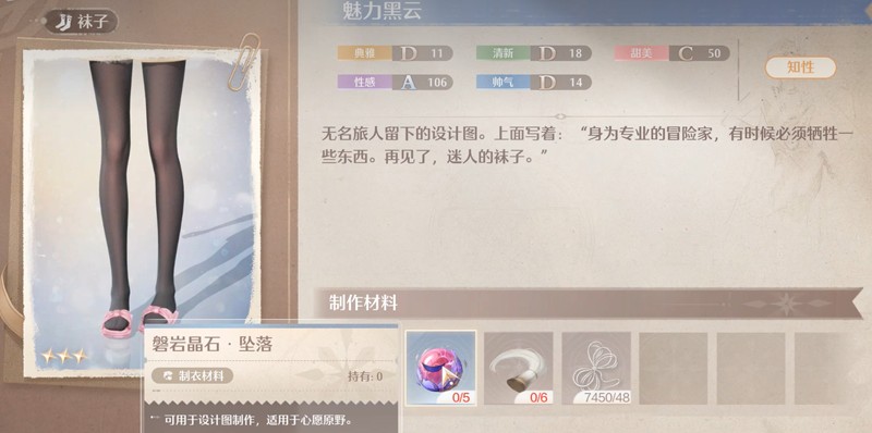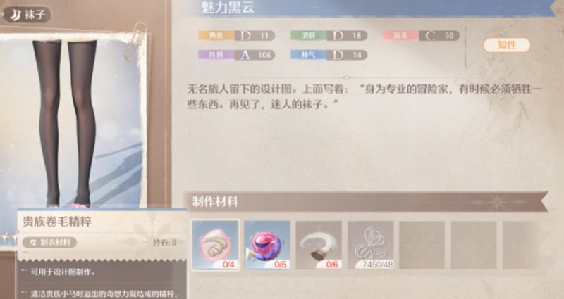 获得设计图后需要收集制作材料。制作魅力黑云需要4份贵族卷毛精粹和5颗磐岩晶石·坠落。这些材料可以通过刷取特定副本获得,建议玩家多参与游戏中的日常活动来积累所需材料。