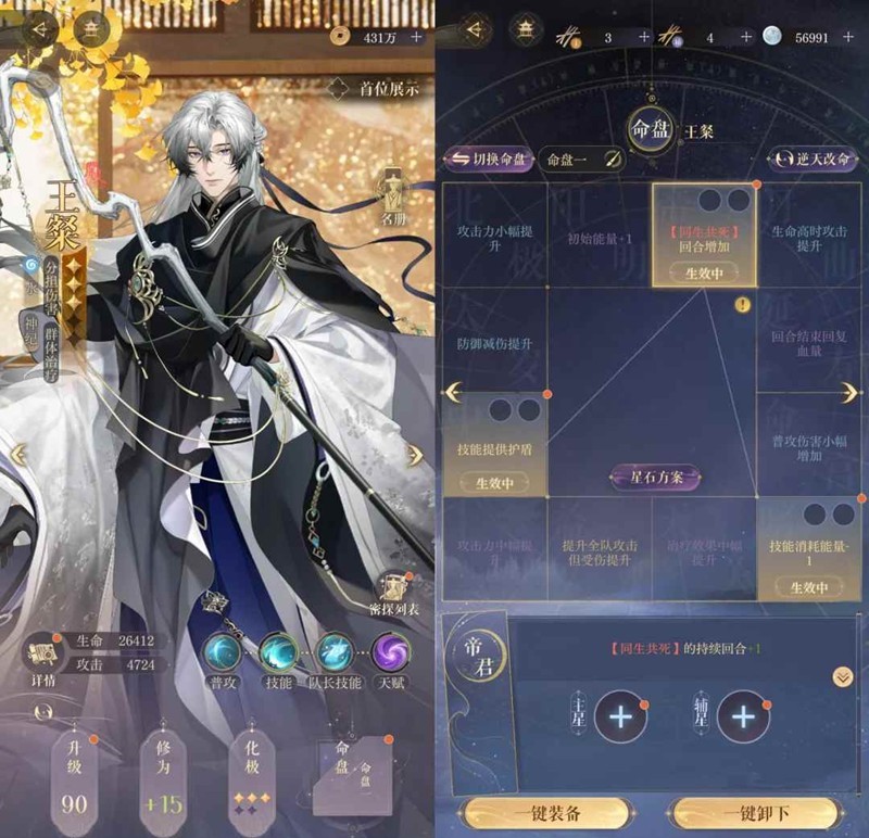 3. 王粲命盘必须有技能护盾+技能消耗能量-1