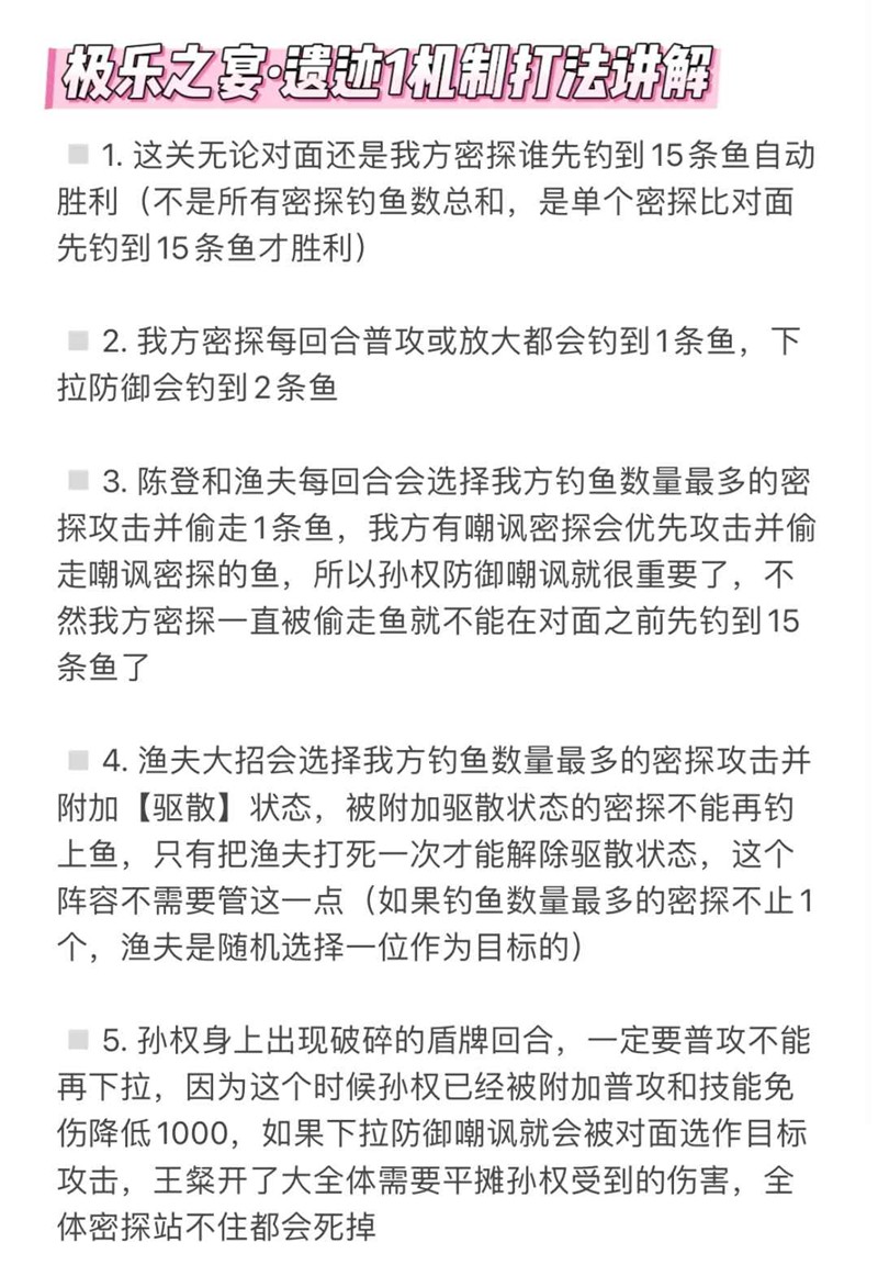 如鸢游戏以策略卡牌和沉浸式剧情为核心玩法,共有傅融、刘辩、袁基、左慈、孙策五位男主,玩家只需完成指定任务和剧情对话就能快速通关。每一位男主按顺序会开启地宫玩法,本次地宫是刘辩极乐之宴地宫,那么极乐之宴·遗迹1如何通关呢?小编为你准备了一份攻略,一起来看看吧~