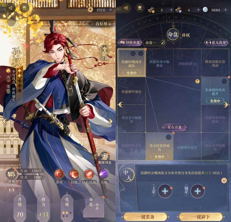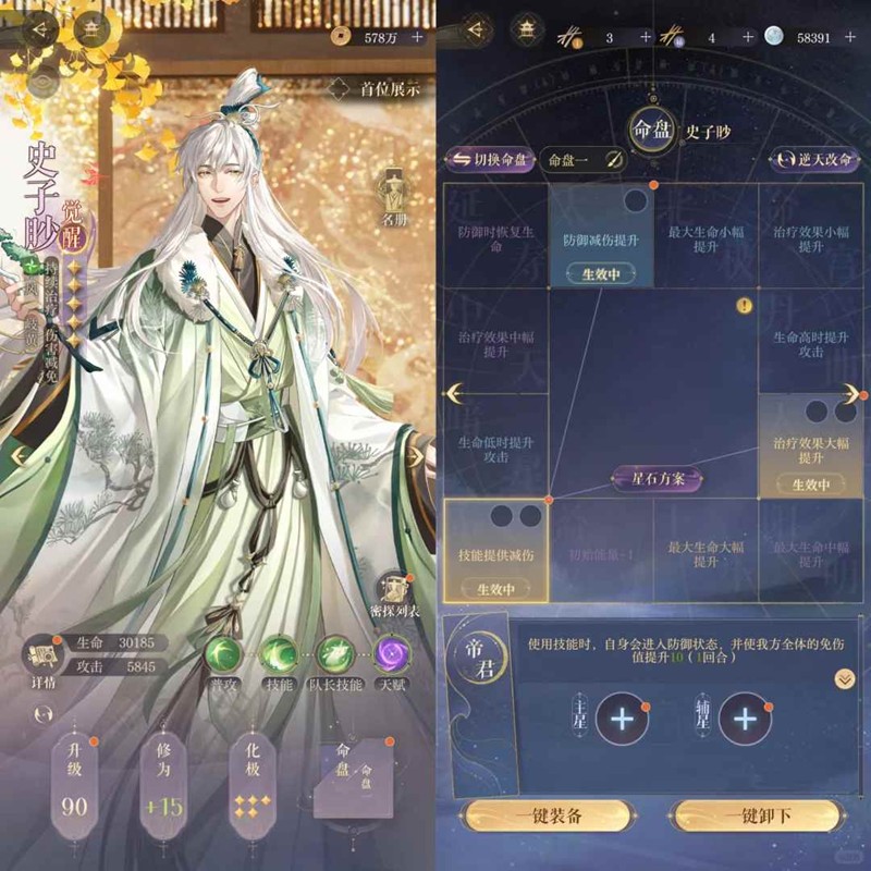 2. 王粲命盘必须有技能护盾+技能消耗-1